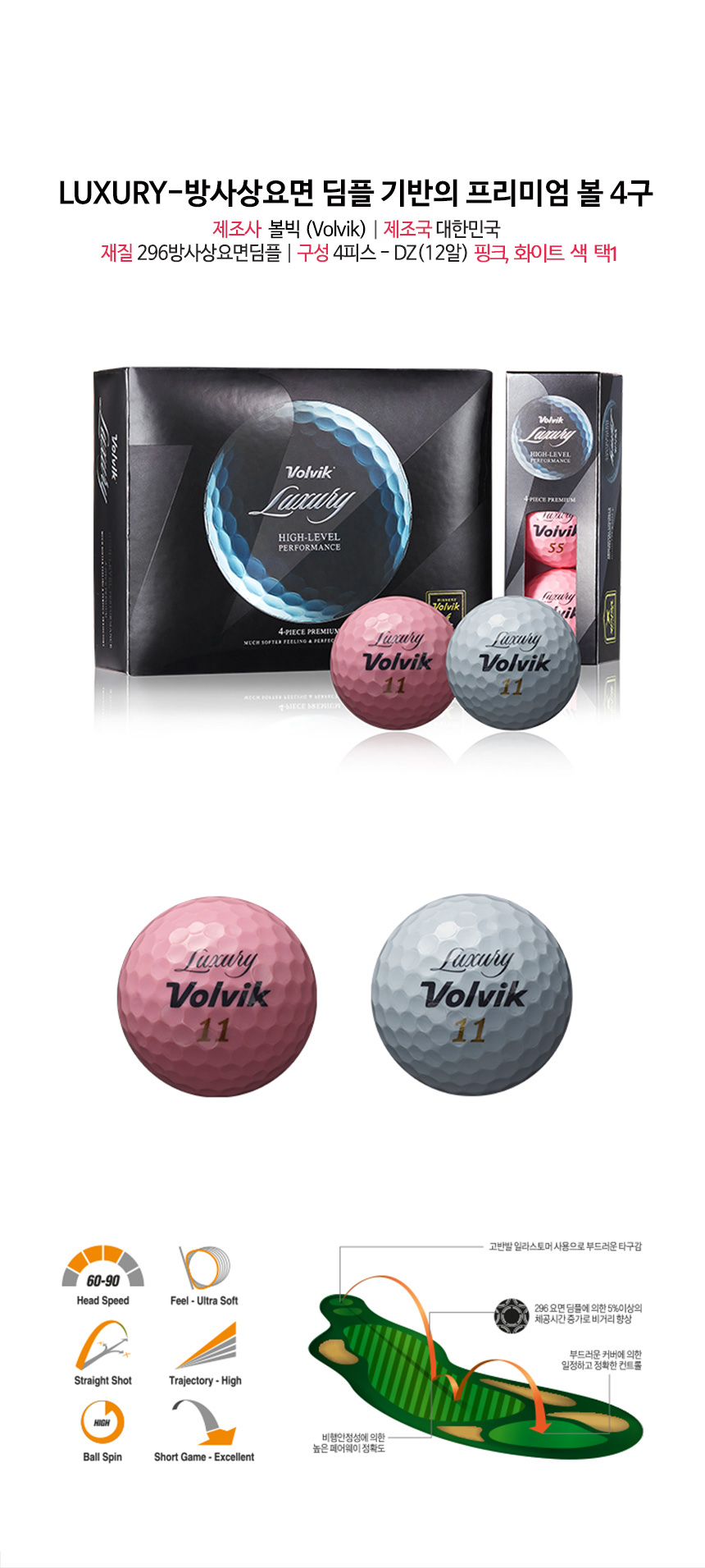 º¼ºò ·°¼Å¸® 12±¸ º¼ °ñÇÁº¼ ÇÎÅ©, ÈÀÌÆ® 2»ö ÅÃ1 °ñÇÁ¿ëǰ Çʵå¿ëǰ [Volvik LUXURY 4PC] ³²ÀÚ ¸íǰ ¼îÇθô ¿¹³² YENAM